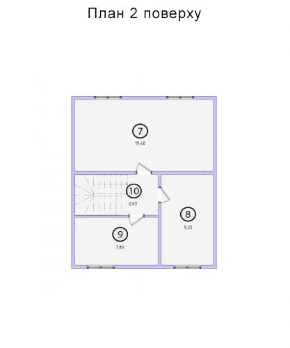 Верхній поверх включає дві різні за розміром кімнати. Вони розташовані перпендикулярно, але не стикаються між собою. Зліва від меншої спальні розташовується великий санвузол.