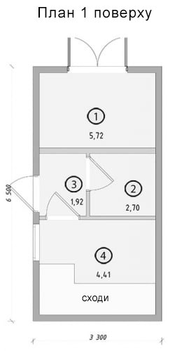 – у верхній кімнаті є невелика перегородка, яка допоможе поділити зони, призначені для виконання різних функцій.