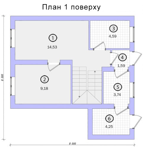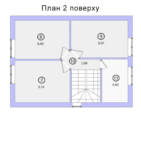 – двері у верхні спальні знаходяться поруч, це спрощує доступ до кожної кімнати. Їхній розмір майже однаковий, всі вони – прямокутної форми та з одним вікном.